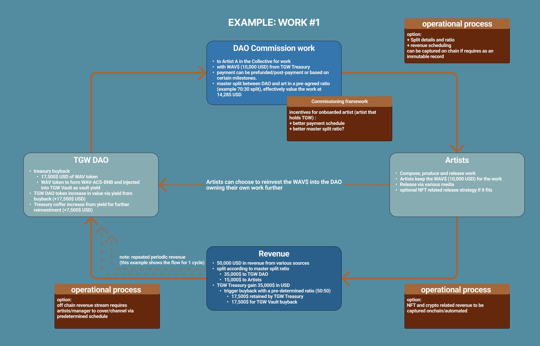 The DAO funds your work, provides industry and developer support, exposes your art to new audiences and communities within the Web3 space, and shares the profits with you.